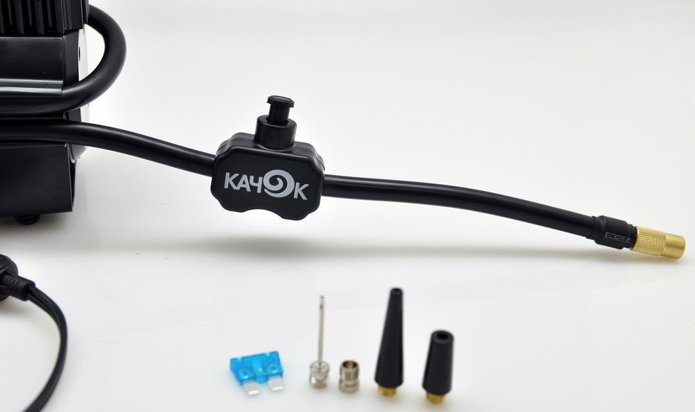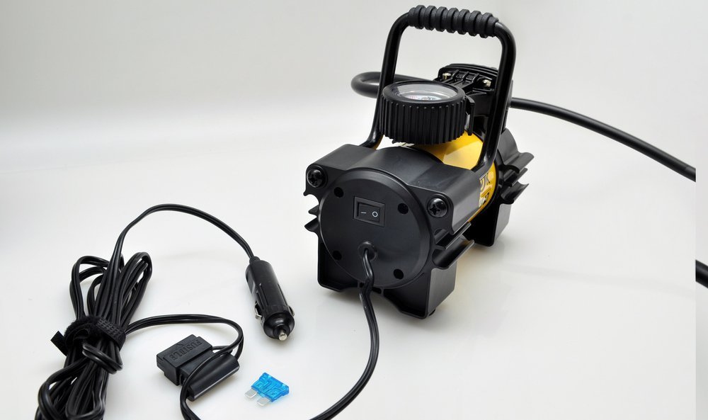 Дополнительная информация : Навинчивающаяся насадка на ниппель колеса, Удобная ручка для переноски, двушкальный манометр, Встроенный плавкий предохранитель 15A.