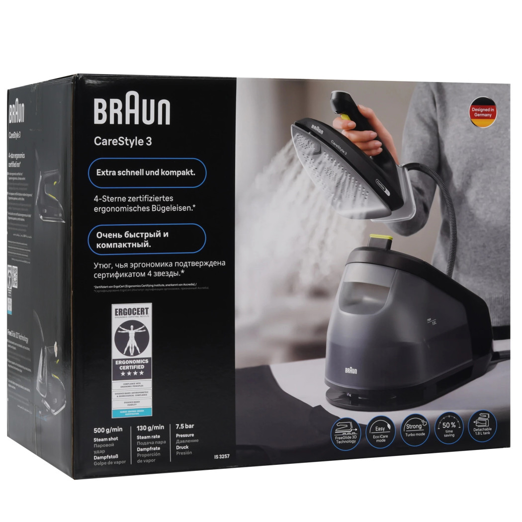 Типпарогенератор / гладильная система Модель: CareStyle 3 IS3257BK Серия: CareStyle 3 Цвет: черный Питание: от сети (220 В) Страна‑производитель: Китай