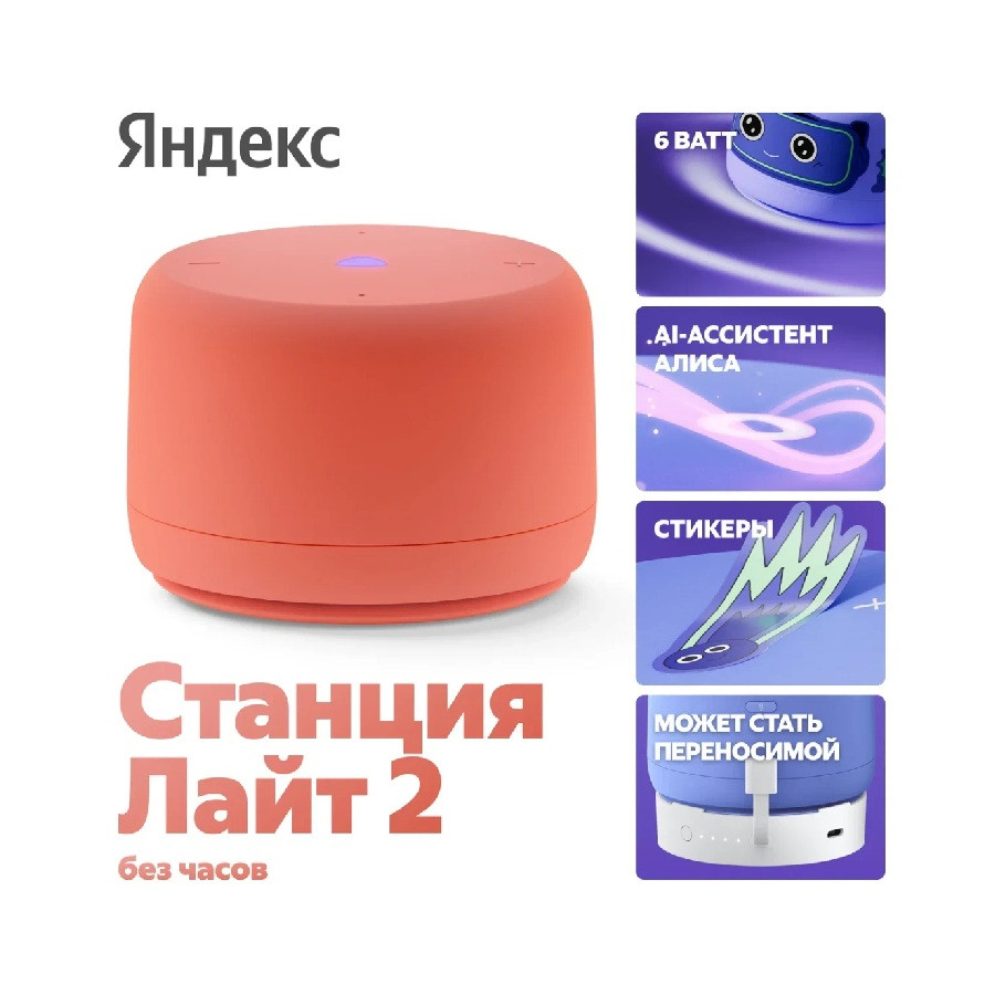 Умная колонка Яндекс Станция Лайт 2 (без часов) оранжевый